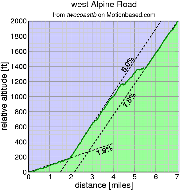 We'll meet at Sam McDonald Park on Pescadero Road 1/2 mile west of West Alpine. Water and restrooms are available. We'll then promenade down the hill to the start on West Alpine. Parking is available at Sam McDonald for a fee, however, we ask you park elsewhere if possible and ride in to the start to avoid creating any congestion and competition with hikers and equestrians. Low-key, with its kindler and gentler than average start time, allows plenty of time to ride to the start from the Peninsula. Or, if you need to drive, consider parking at Russian Ridge, Montebello or Los Trancos Open Space Preserves near the top of Page Mill then riding down Highway 84 or West Alpine. Then after the ride, you can return to your vehicle straight from the finish. Alternately, starting from Pescadero or San Gregorio f you're coming from the north or south, it'll be a nice short ride back to the coast after the climb. Many, many options.