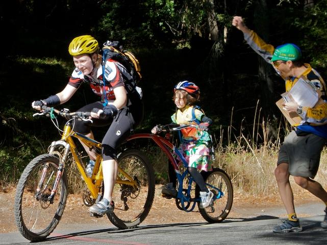 Meredith Nader (Pen Velo) pushes her mother over the line to take a commanding lead in the 5-and-under juniors ranking. (Josh Hadley, Through the Lens) |
