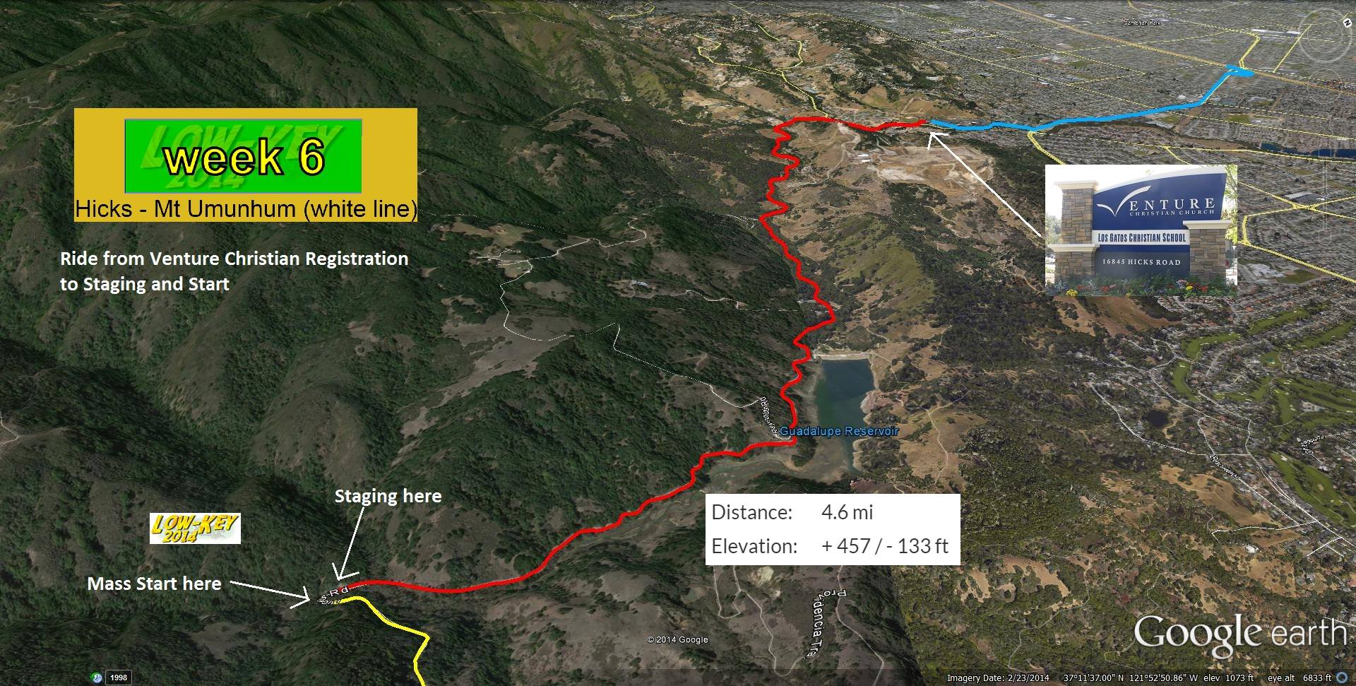 We will ride as a group from Registration at Venture to staging, at the second bridge on Hicks just before it climbs. We will group up, fastest first, about 20 yards from the climb start.