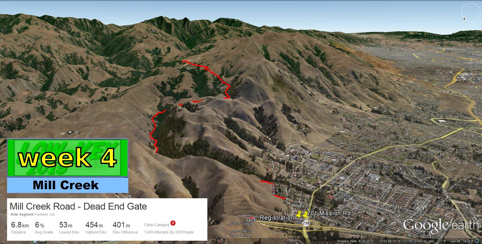 This is a rare public-transit-friendly week for Low-Key Hillclimbs! BART to Fremont isn't far from the start. The BART schedule is here.