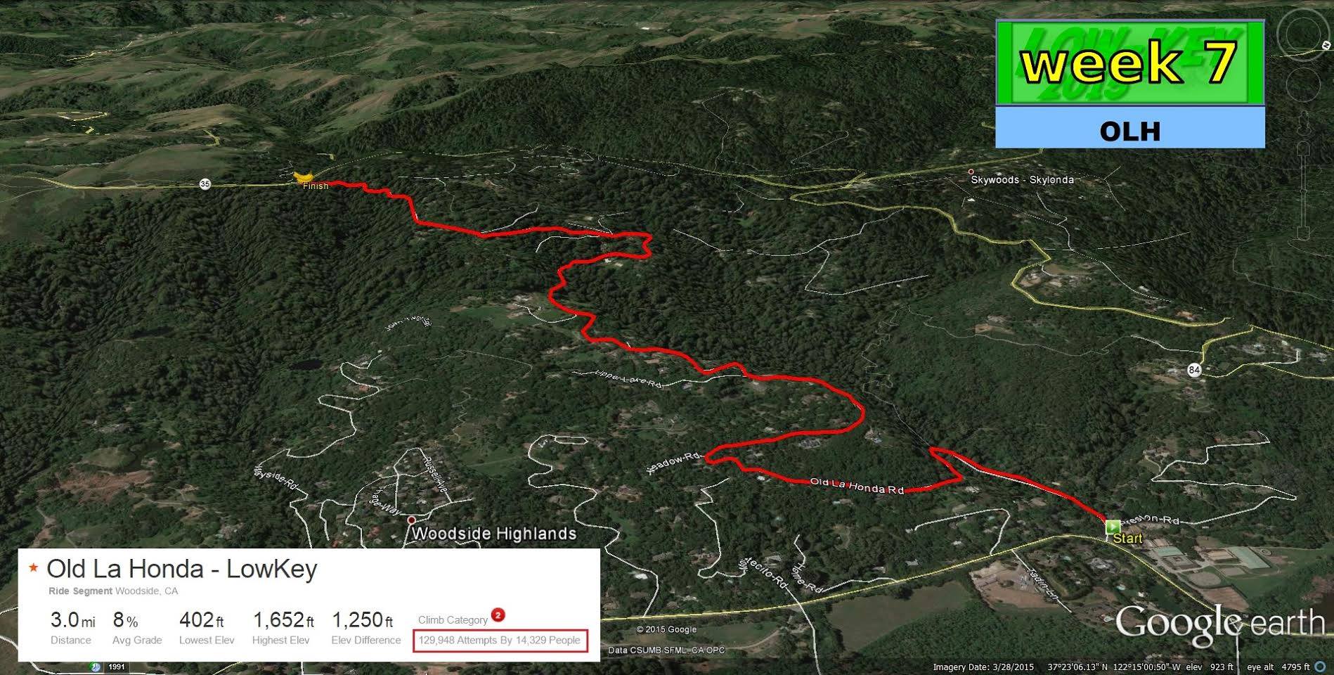 Check-in will be in the Park & Ride at Sand Hill just west of 280, on Lawler Ranch Road just off of Sand Hill. This will be check-in only, no parking. Parking is available in bountiful abundance in Woodside, in Portola Valley, and in the Sharon Park shopping center off Sand Hill east of 280, among other places. Remember: OLH is a short, intense effort and it pays to have warm-up so you'll do better getting some riding in before the event.